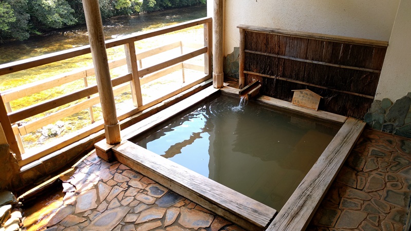 外に見えるのは宇連ダムで有名な宇連川。岩盤の上を水が流れているような川である。それを眺めながらのんびり温泉を独り占め。贅沢すぐる(^o^)/