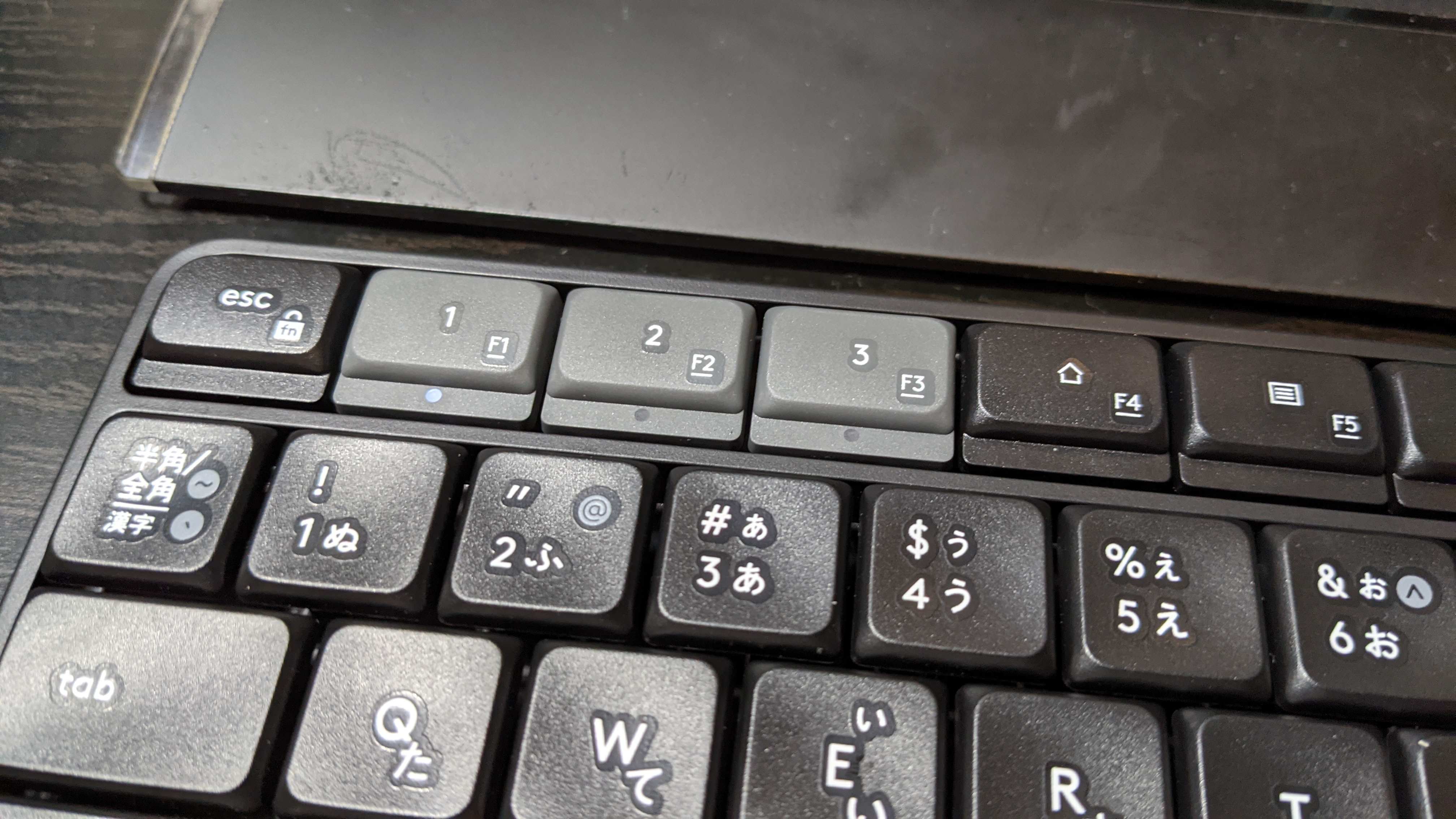 切り替え操作はこのグレーのキーを押すだけ。もちろんこのキーはファンクションキーとしてロックすることもできるので安心。俺は低頻度なので切り替えるときだけロックを解除して押せばいいと思った。